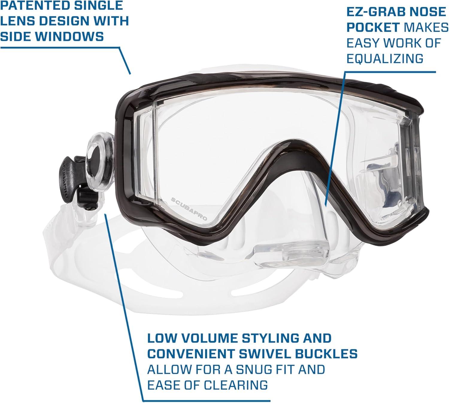 EZ-grab nose pocket makes simple work of equalizing; backed by a two-year warranty.