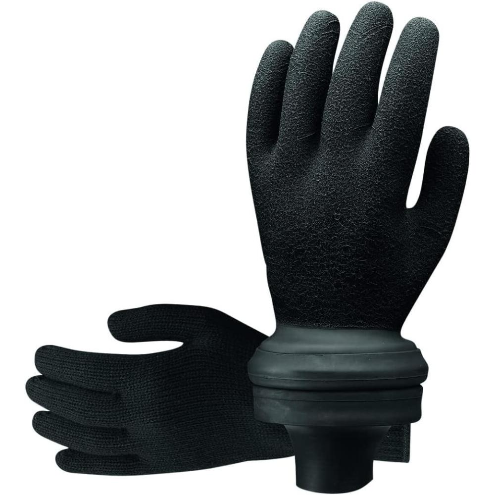 For use with drysuits, semi-drys, and wetsuits for those extra-chilly days at depth, the SCUBAPRO Easy Don Dry diving glove features vulcanized rubber construction.