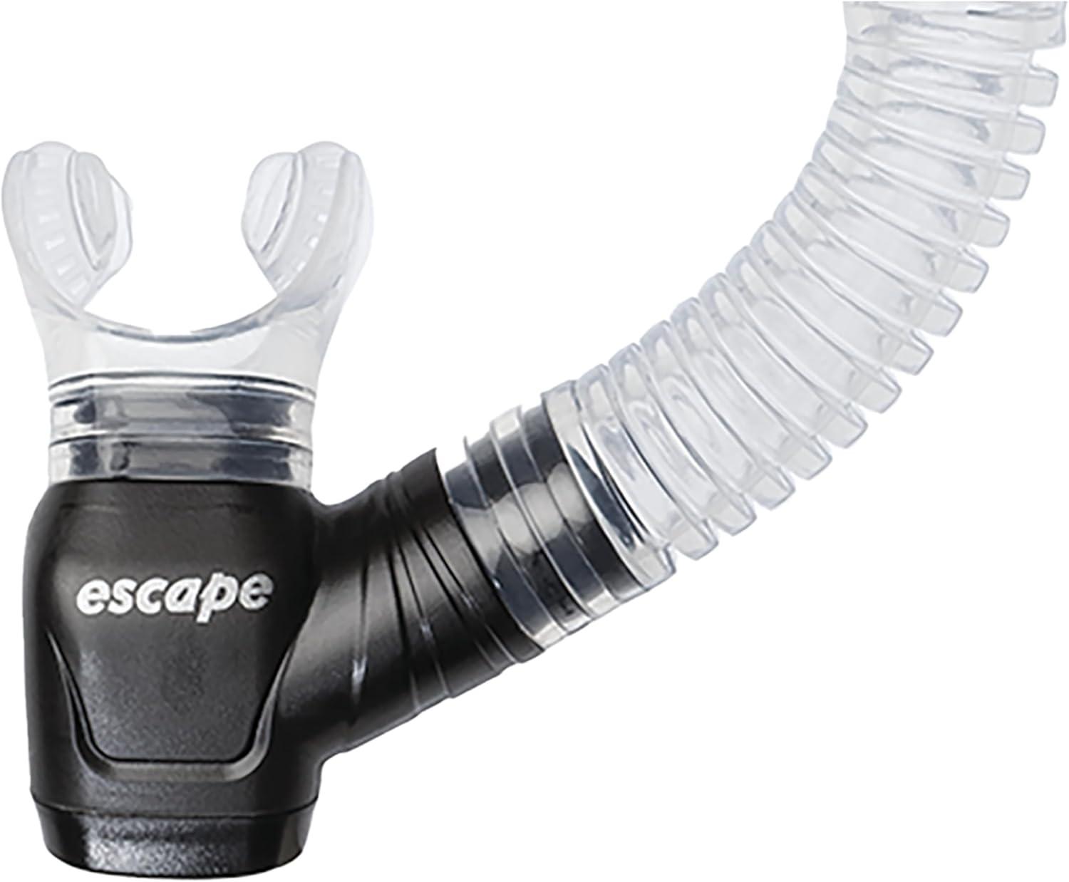The splashguard barrel-top design of the Escape helps keep water from entering the large-bore barrel while allowing abundant airflow. Included with this easy-to-use snorkel is a very efficient purge valve located down low, an ultra-comfortable regulator-style mouthpiece and a convenient clip for quick removal from your mask strap.