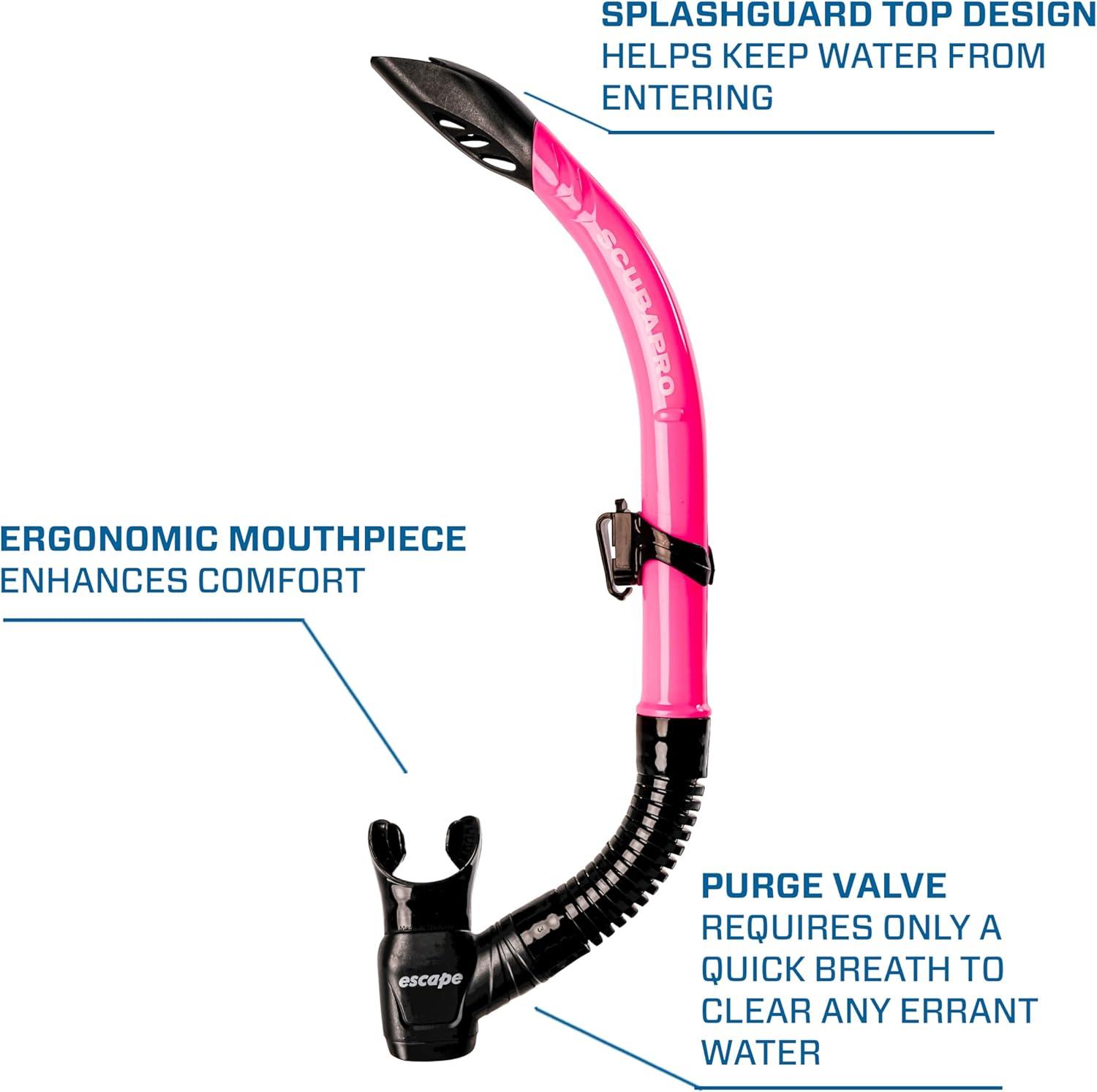 SCUBAPRO Escape Semi-Dry Snorkel, with Purge Valve and Splashguard Barrel-Top Design(Pink)