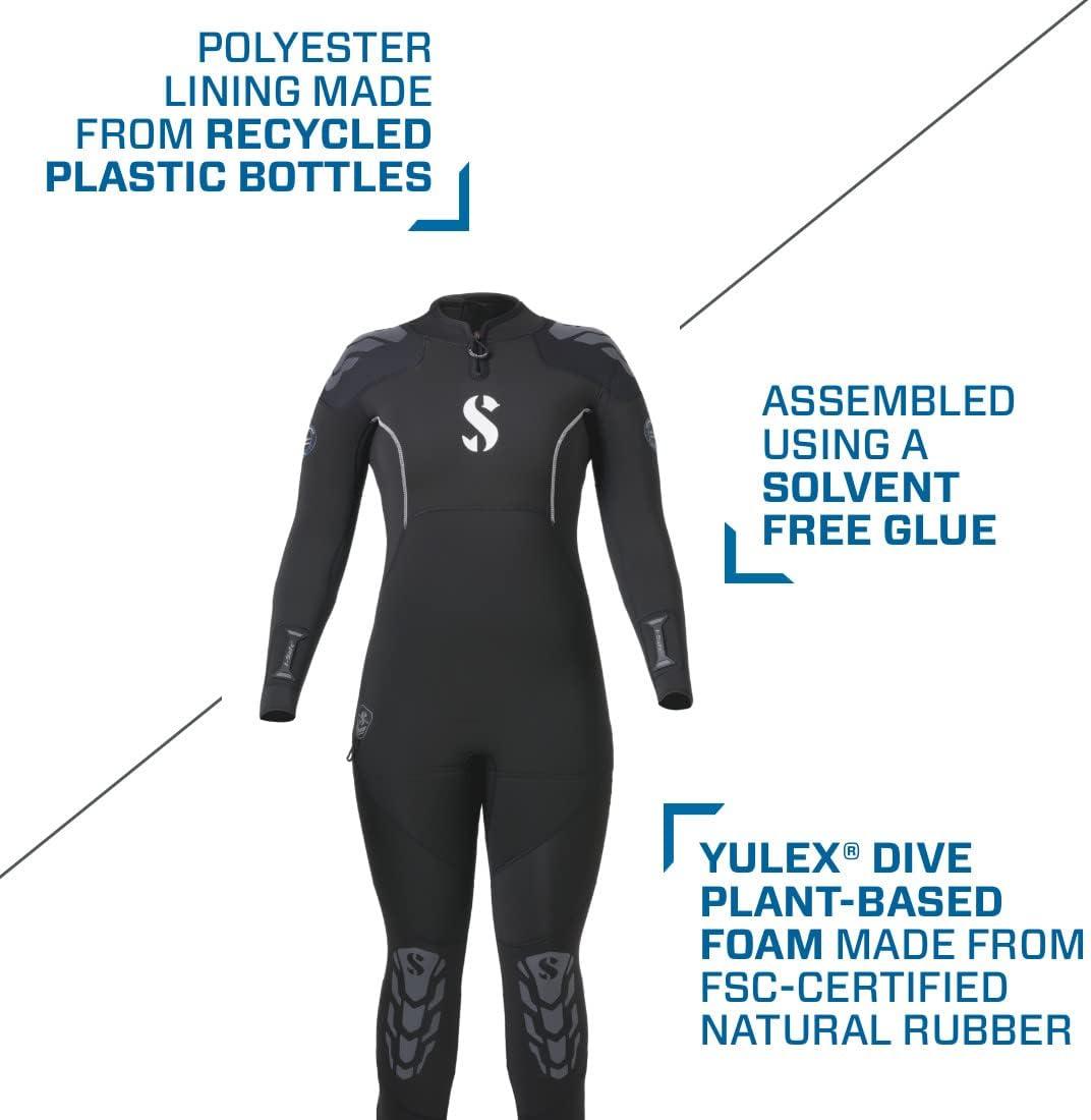 Everflex Yulex Dive steamers offer the same award-winning comfort and thermal protection that have made Everflex the wetsuits of choice among divers around the world. They are designed with SCUBAPRO’S exclusive Pure Design Concept, with just enough multi-thickness panels to guarantee maximum stretch and comfort. They fit comfortably snug and deliver unparalleled freedom of movement. They also provide superb resistance to water compression to keep divers warmer and deeper, for longer. The foam is layered inside and out with a polyester lining made from recycled plastic bottles, and an updated Diamond Span inner fleece lining in the torso area enhances warmth while making donning and doffing so much easier. Everflex Yulex Dive steamers are offered in three thicknesses to cover virtually every diving scenario and are loaded with features that maximize comfort, warmth and ease of use.
