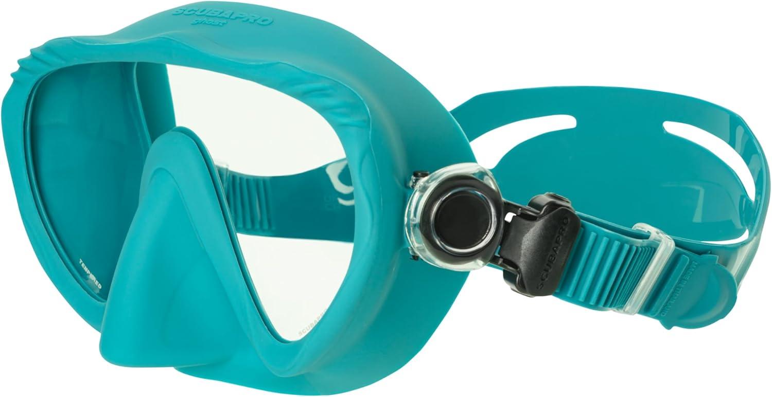 imageSCUBAPRO Ghost Scuba Dive Mask LowVolume Frameless Design wUltra Clear Single Lens Silicone Skirt and EasyAdjust Strap Buckles Turquoise