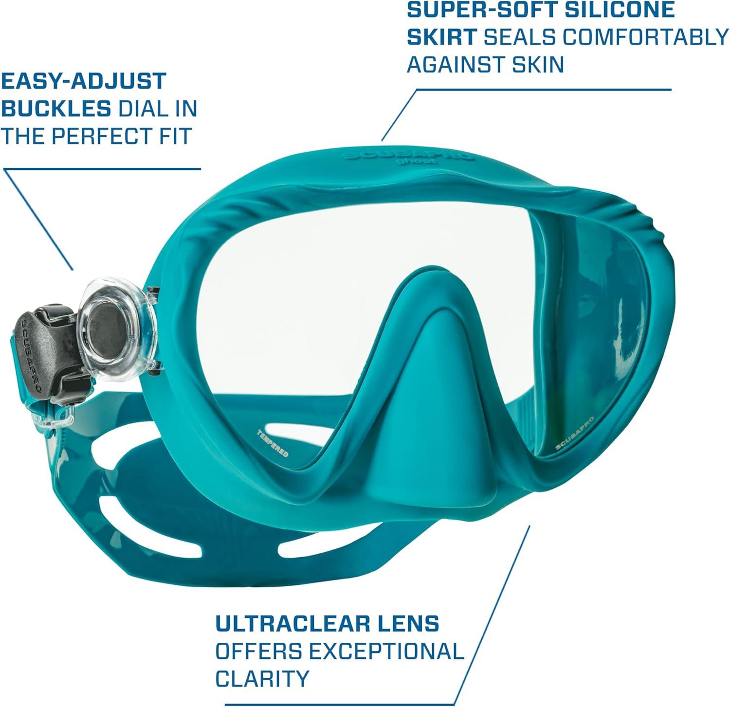 SCUBAPRO Ghost Scuba Dive Mask, Low-Volume Frameless Design w/Ultra Clear Single Lens, Silicone Skirt and Easy-Adjust Strap Buckles, Turquoise