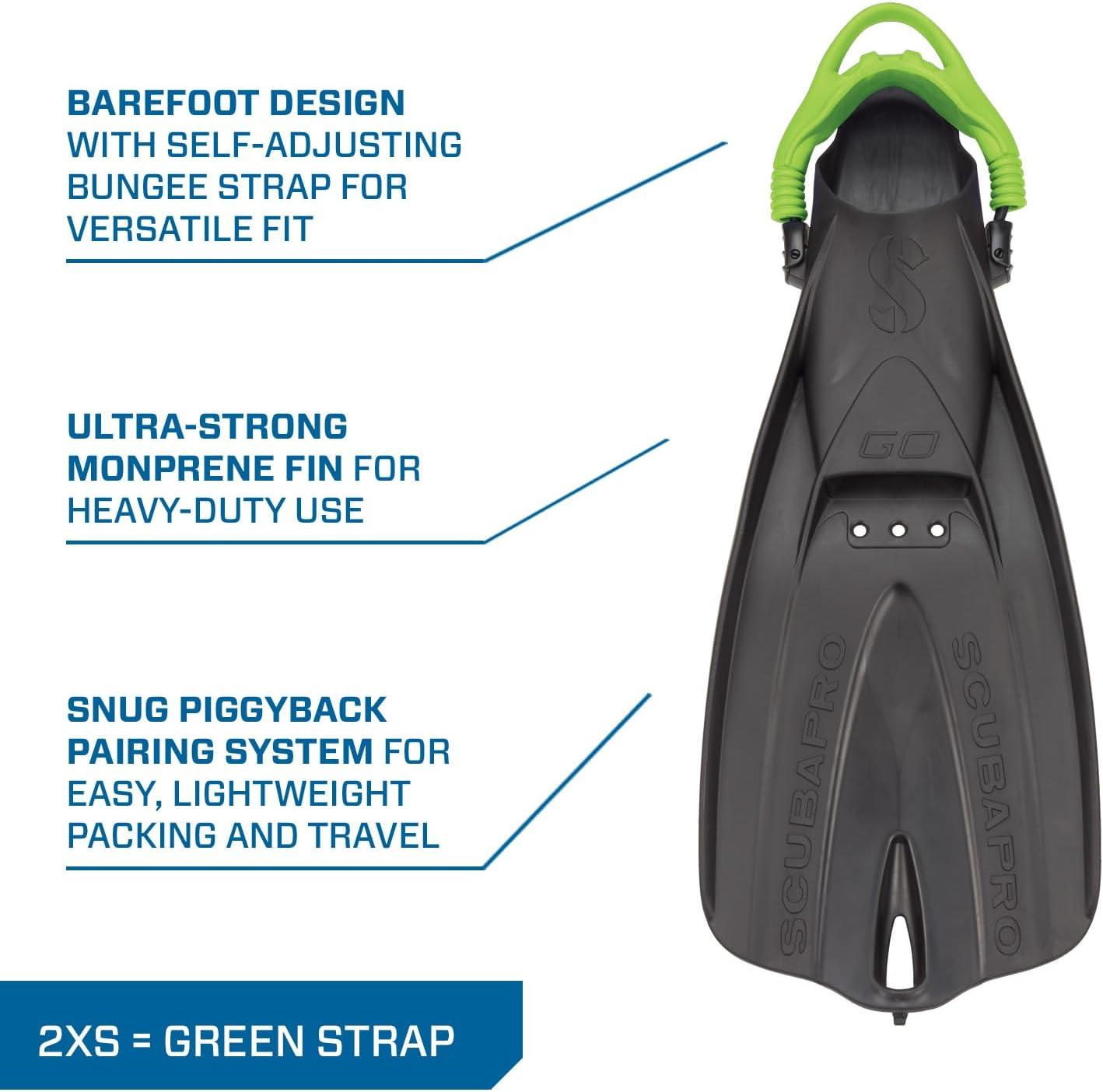 SCUBAPRO GO Travel Scuba Diving Fin for Snorkeling and Swimming, Open Heel Strap(Lime Green;Black)