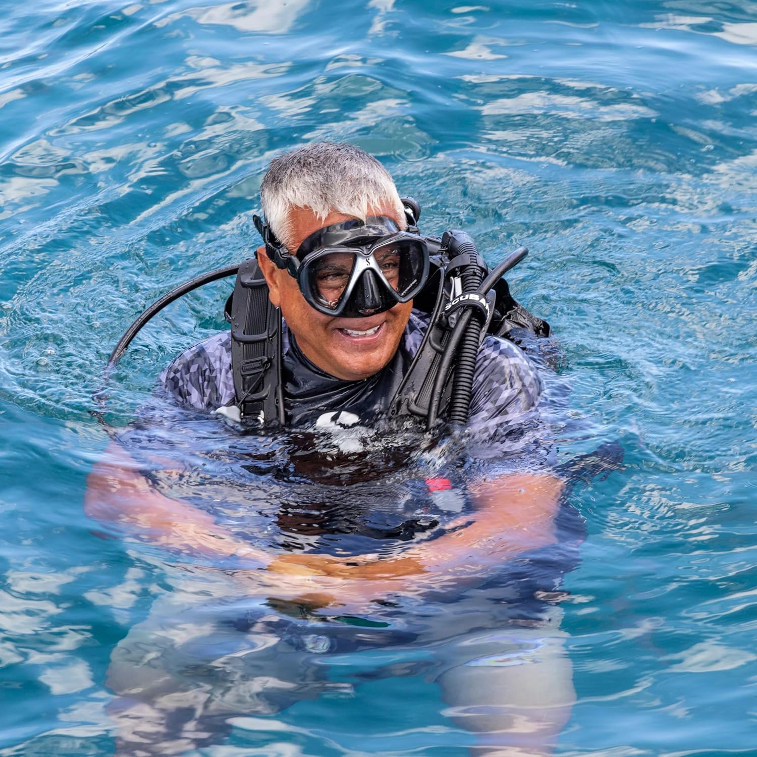 Designed for diving but perfect for all water sports, this men's UPF50 rash guard also protects you from the sun while on the surface — blocking 98% of UV radiation. Highly versatile, it's ideal for divers, snorkelers, paddle boarders, swimmers and other water enthusiasts. Made from high-quality polyester, this comfortable yet durable rash guard dries quickly and retains its shape after repeated use. The form-fitting design wears easily under a wetsuit, and the high neck line prevents uncomfortable chafing. Engineered for performance, wear a long sleeve rash guard under a wetsuit at depth or by itself when topside for dependable protection from the sun's rays. Driven to constantly innovate and improve the diving experience, SCUBAPRO builds flawless equipment for the work, sport, and lifestyle of people whose passion is found below the surface.