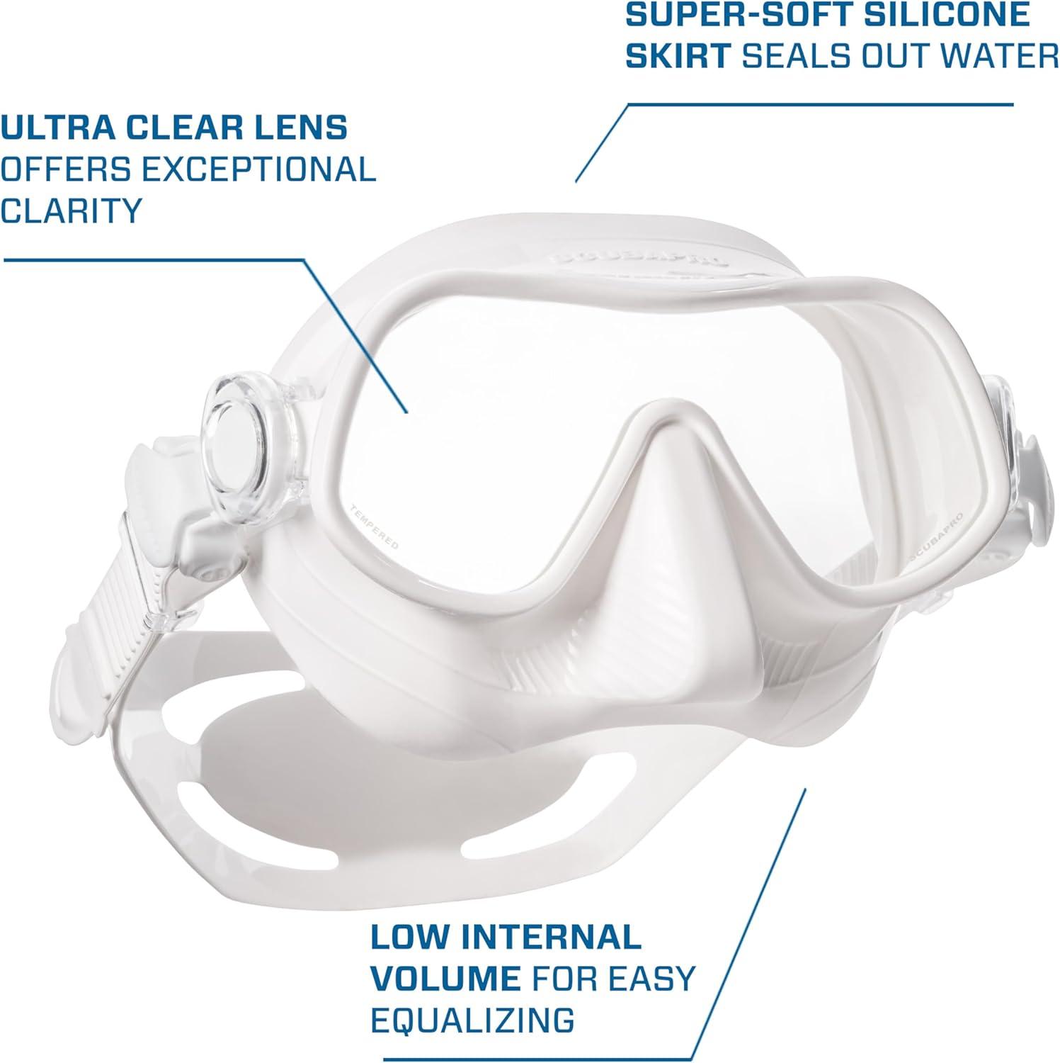 Save up to 40% on SCUBAPRO Steel Pro Scuba Diving Mask for Freediving, with Single Lens and Frameless, Low Volume Design(White) styles during our end-of-season sale.