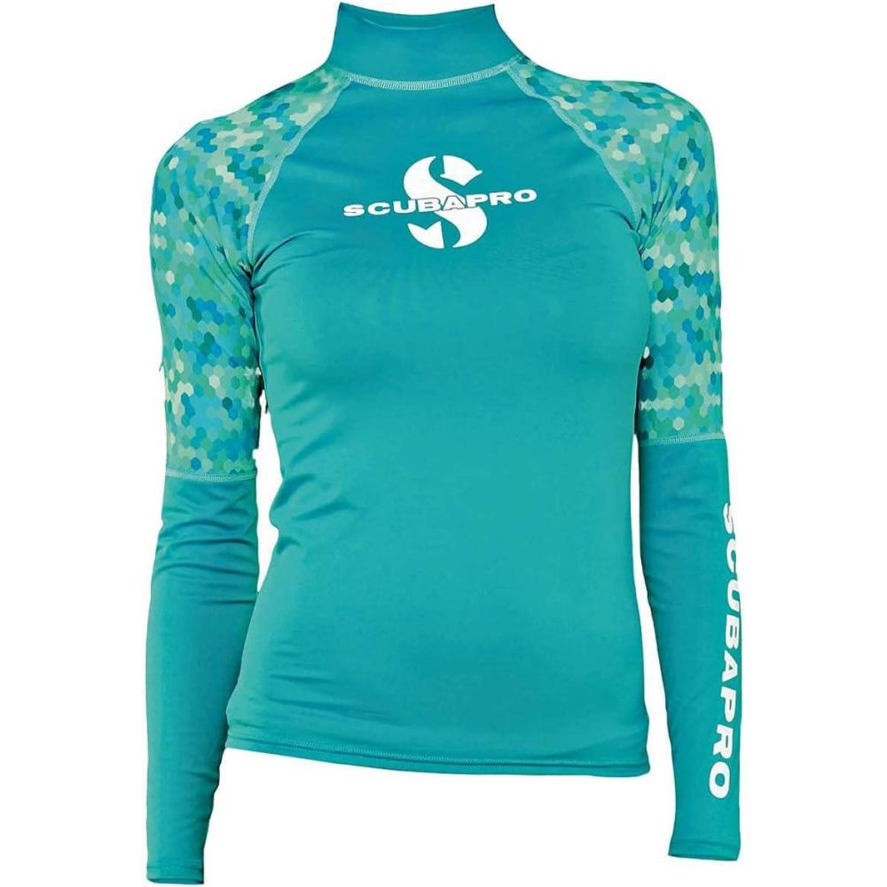Designed for diving but perfect for all water sports, this women's long-sleeve, UPF50 rash guard also protects you from the sun while on the surface — blocking 98% of UV radiation. Highly versatile, it's ideal for divers, snorkelers, paddle boarders, swimmers and other water enthusiasts. Made from high-quality polyester, this comfortable yet durable rash guard dries quickly and retains its shape after repeated use. The form-fitting design wears easily under a wetsuit, and the high neck line prevents uncomfortable chafing. Engineered for performance, wear a long sleeve rash guard under a wetsuit at depth or by itself when topside for dependable protection from the sun's rays. Driven to constantly innovate and improve the diving experience, SCUBAPRO builds flawless equipment for the work, sport, and lifestyle of people whose passion is found below the surface.