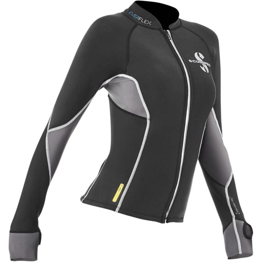 Ideal for tropical diving, snorkeling, or pool training, this 1.5mm Everflex women's thermal long-sleeve top is made with a special high-stretch Everflex neoprene on the outside. A combination of fleece and high-tech plush provides both comfort and extra warmth while reducing water flow. Providing effective insulation under water as well as at the surface, this form-fitting Everflex long-sleeve top is easy to don and doff and offers excellent range of motion. This top is assembled using solvent-free Aqua glue. Wear by itself or match with Everflex 1.5mm shorts or leggings for a total warm water ensemble. Driven to constantly innovate and improve the diving experience, SCUBAPRO builds flawless equipment for the work, sport, and lifestyle of people whose passion is found below the surface.